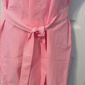 Stylish Seersucker Harbor Tunic Dress in Malibu Pink. Includes a coordinating belt.