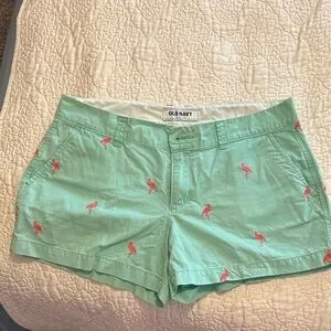 Old Navy Mint Green Shorts with Pink Flamingo Embroidery