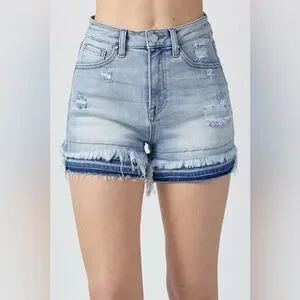 Get ready to elevate your warm weather wardrobe with our High Rise Patched Hem Denim Shorts from Risen! Featuring a contrasting double hem and light distressing, these shorts are both stylish and stretchy for all-day comfort. Perfect for pairing with your favorite crop top or tee.