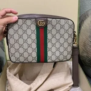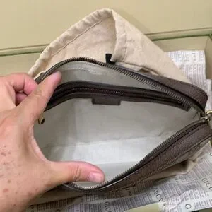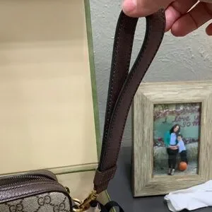 Gucci Ophidia GG shoulder ❌missing long strap ❌Beige with black printed Gucci crest. Drawstring closure with black ties. Soft protective storage for accessories.