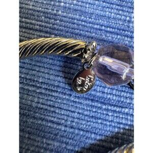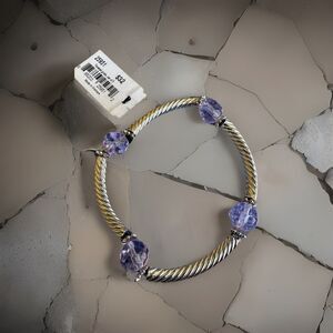 Up for sale is a gorgeous Cookie stretch bracelet, new with original tags attached. These feature a luxurious twisted cable design in two-tone gold and silver, accented with large faceted lavender/light amethyst glass beads. The brand signature charm is attached. A timeless, stackable look that pairs beautifully with casual or dressy outfits.