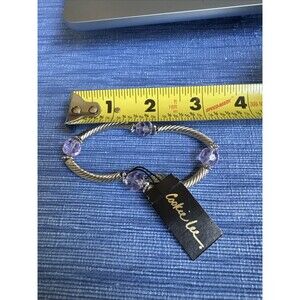 Cookie Lee Faceted Glass Stretch Bracelet Twisted Cable Gold Silver Tone Lavendr
