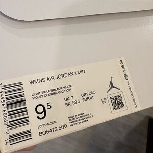 Women's Jordan 1 Mid in light violet and white. Black accents on branding and details. Stylish mid-top silhouette.