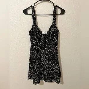 Cloud & Sky Black Floral Mini Dress Knot Front Cutout Lined Women’s Size Small
