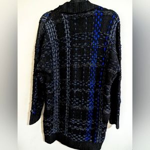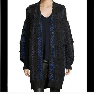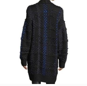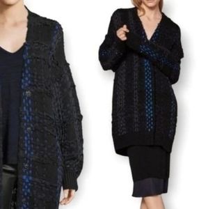 Rag & Bone Dawson Chunky Wool Knit Ribbon Cardigan Coat Black + Blue