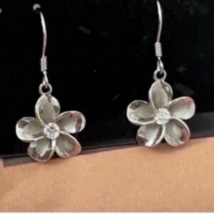 New Sterling Silver & Cubic Zirconia Flower Earrings