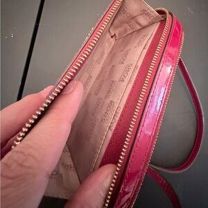 Michael Kors Crossbody Wallet Patent Leather Red 7x4x1.5 Inches Double Zipper