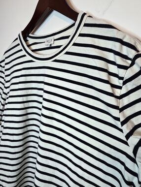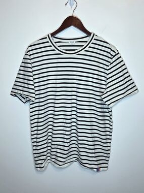 Kule Mister Black White Striped Cotton Tee Coastal Preppy Travel Size Medium