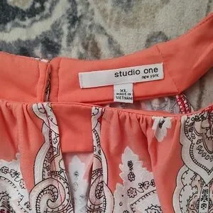 Studio One Coral and Pink Paisley Maxi Dress. Halter Top.