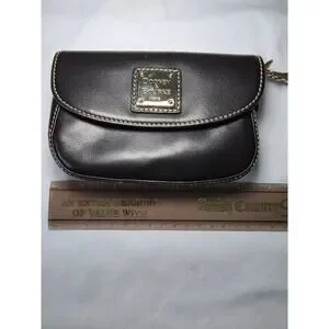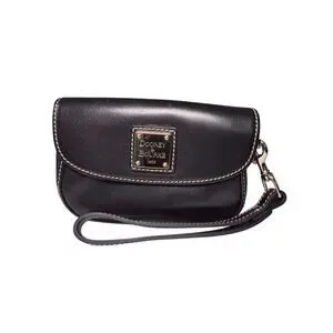 Dooney & Bourke Heritage QT112 Black Leather Wristlet Set With Box/Card/Dustbag