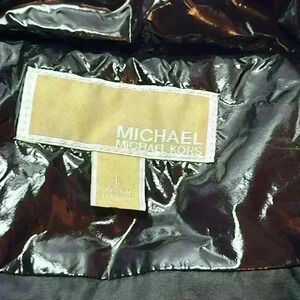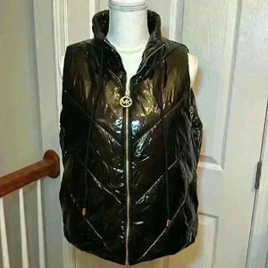 MICHAEL KORS Women’s Sleeveless Puffer Vest Size LARGE Black w/Gold MSRP $125.00. Vest is in used but great condition! Not rips, stains or tears.