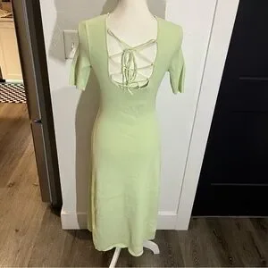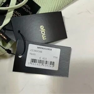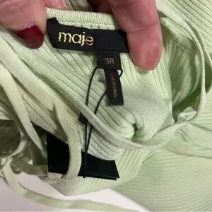 Maje Pastel Green Ribbed Knit Tie Back Midi Dress 38