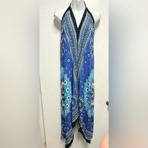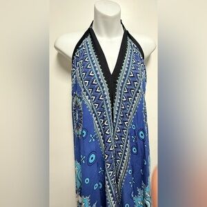 Blue Halter Maxi Dress with Pattern beach cover up