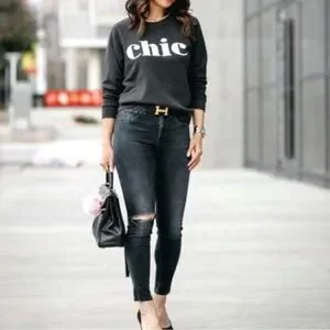 Anthropologie | Sol Angeles Black Gray Chic' Sweatshirt Medium