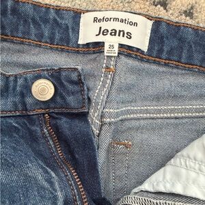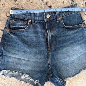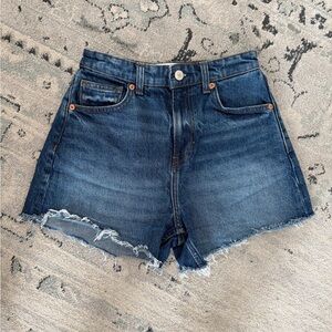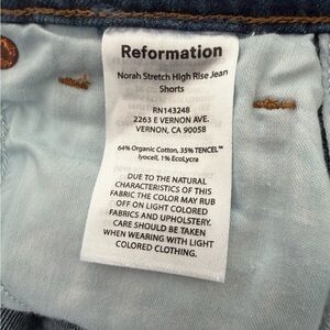 These denim shorts from Reformation feature a high-rise silhouette, zip fly.