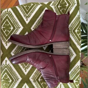 Miz Mooz “Legacy” Burgundy Leather Ankle Boots with Buckles Size 8