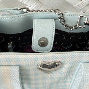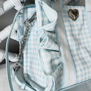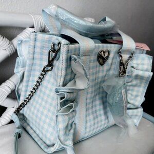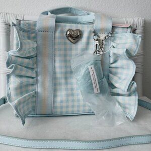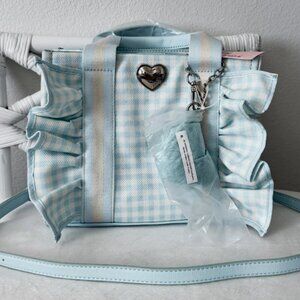 Betsey Johnson Luv Betsey Light Blue Gingham Ruffle Shoulder Bag Heart Sharm NWT