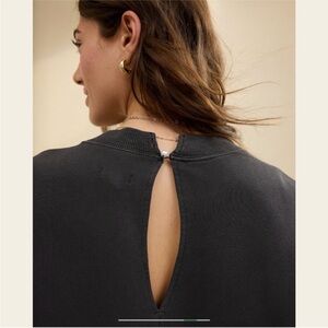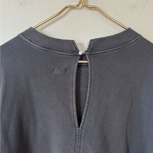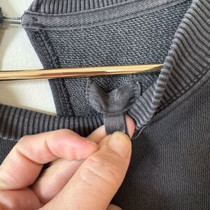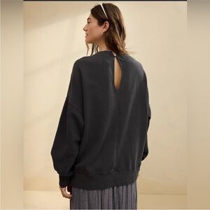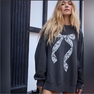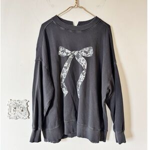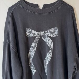 Aerie Big Chill Lace Bow Oversized Sweatshirt Coquette Washed Black and White L