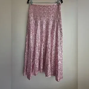 Norma Kamali Pink Sequin Midi Skirt - Rose Gold High Waisted Flare