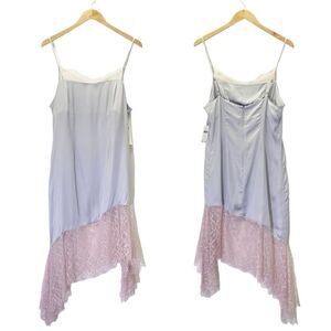 NWT Anthropologie Lace-Trimmed Asymmetrical Midi Slip Dress Gray Pink Size 8 NEW