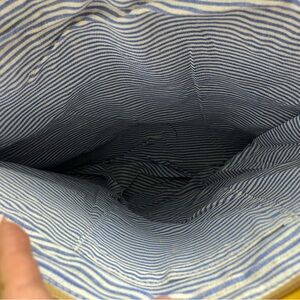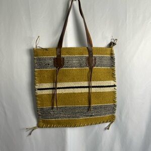 Striped Mustard Woven Tote with Brown Leather Handles