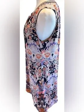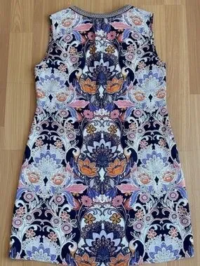 DR2 Women’s M Navy Blue Floral Paisley Boho Sleeveless Shift Dress Medium