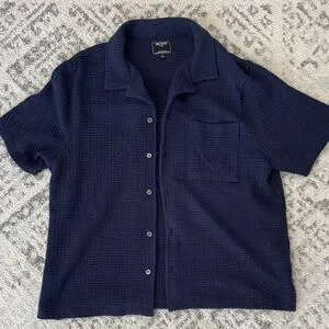 Elegant blue knit shirt with a textured pattern. Crafted by Todd Snyder.
