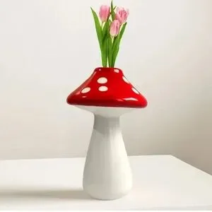 NIB Ceramic Red & White Mushroom Vase - Decorative Home Accent