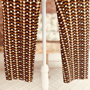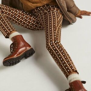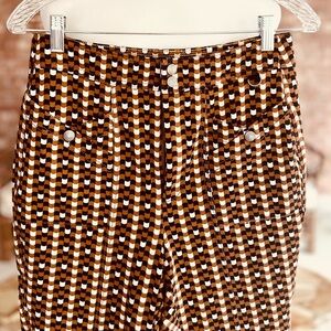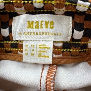 Maeve Anthro Checkered Pants Slim Ankle 8 Brown Black Knit Retro Mod Stretch