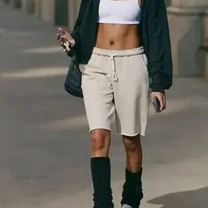 NWOT Free People Movement For the Win Shorts in Oatmeal - Slouchy, Relaxed Fit, High-Rise Style, Elasticized Waist, Drawstring Waistband, Long-Line Design, Raw Edge Hem, Side Pockets