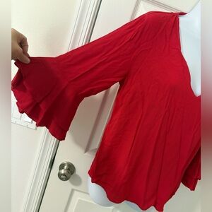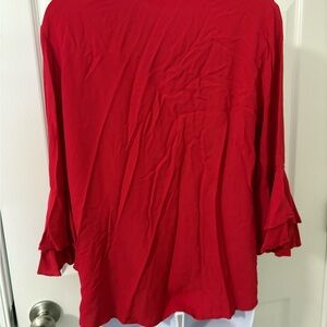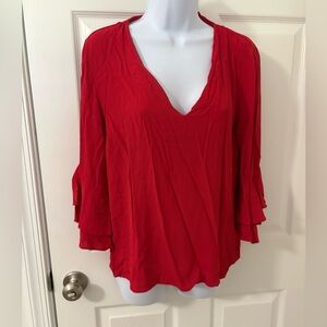 Zara Woman Red v-neck Blouse Size lg Layered Bell Ruffle Sleeves