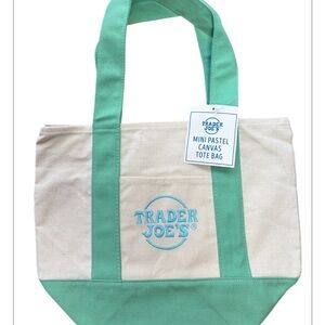 Trader Joe’s Spring 26 mini tote in green. Mint Green and Cream Canvas Tote Bag