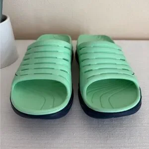 Comfortable mint green slide sandals with a sleek design. Perfect for casual wear.