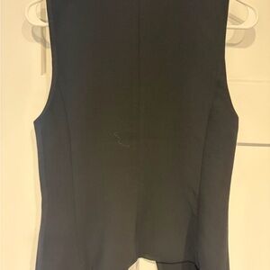 Chic black blouse with button-up front. Sleeveless design. Perfect for versatile styling.