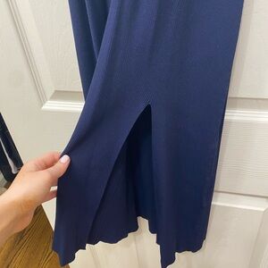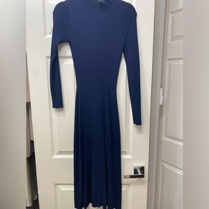 & Other Stories Navy Long-Sleeve Ribbed Midi Dress