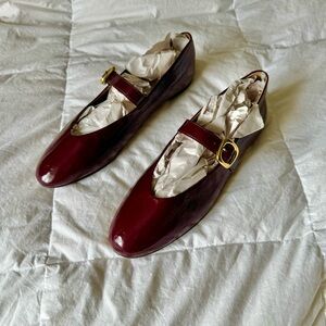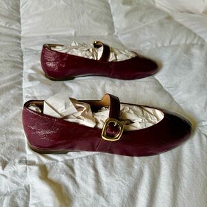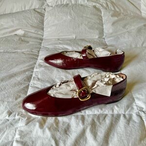 MADEWELL The Remy Crinkle Patent Leather Mary Jane Flats - Deep Plum Size 10.5