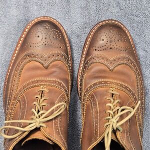 Keywords: Heritage, Americana, Preppy, Dark Academia, Business Casual, Rugged, Brogue, Handcrafted, Made in USA, Classic, Versatile, Distressed Leather, Professional, Timeless