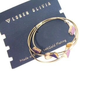 NEW LOREN OLIVIA OPEN GEOMETRIC CUFF ADJUSTABLE BANGLES GOLD PLATED