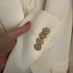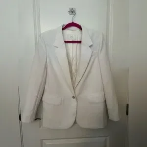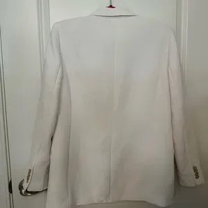 Like new, worn once for a very short time. Back slit is still stitched. This is in their beautiful Light Birch color with contrasting tortoise buttons. This runs BIG! Can likely fit a size 4-6.