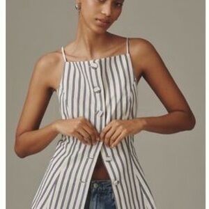 Anthropologie Vertical Stripe Button-Front Camisole - White & Blue