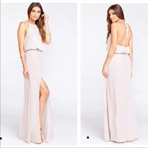 The Heather Halter has a mid rise back, a high neckline that ties, and a cinched waistline making her undoubtedly the perfect dress whether you're a bridesmaid or a guest. If you want to make her more formal, dress her up with a Mumu bridesmaid sash.