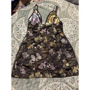 Urban Outfitters Koi Fish Jacquard Metallic Mini Dress Black Gold Silver Small