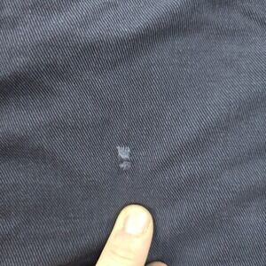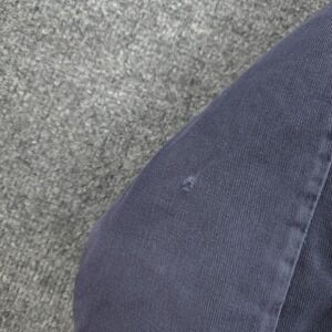 Pre-owned flame resistant work jacket with overall wear, fading, and wrinkling from regular industrial use. Outer shell has several small frayed holes and abrasion spots on the front sleeve and back panel as shown in the photos. Quilted lining, rib knit collar and cuffs, snaps, and pockets remain intact and functional; jacket is sold as the outerwear piece only without original packaging or additional accessories.