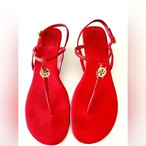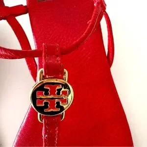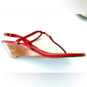 Tory Burch Emmy Leather Thong Wedge Sandals Red 9.5M