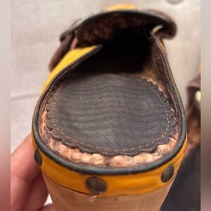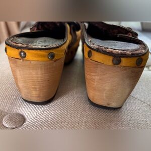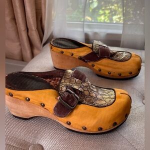 Kenzie Gold Leather Buckle Clog Mules with Metallic AccentSize 6.5