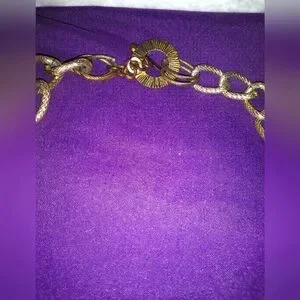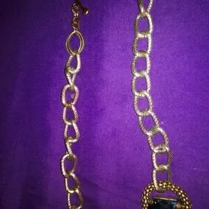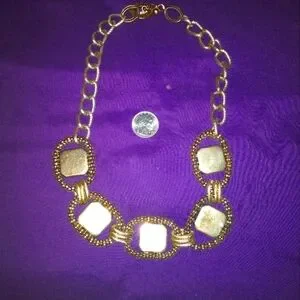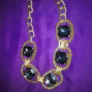 This beautiful statement piece is guaranteed to turn heads, and dress up any outfit. It has massive gold plated links that connect to a number of huge gems that are blackish brown in color. The neckace is. 23.5" from one end to the other. Feel free to message with any questions.
