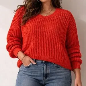 Old Navy Bright Orange/Res Crewneck Knit Sweater