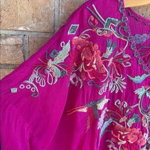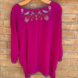 Johnny Was Magenta Embroidered Blouse