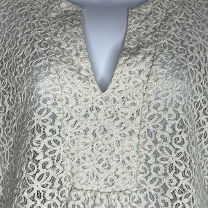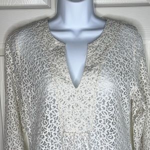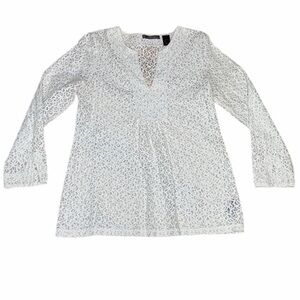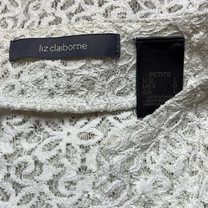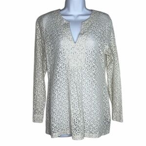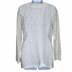 3 for $20 LIZ CLAIBORNE Stiff Floral Lace Long Sleeve Blouse Top V Neck Sheer L