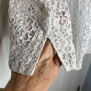 LIZ CLAIBORNE Stiff Floral Lace Long Sleeve Blouse Top Split V Neck Sheer